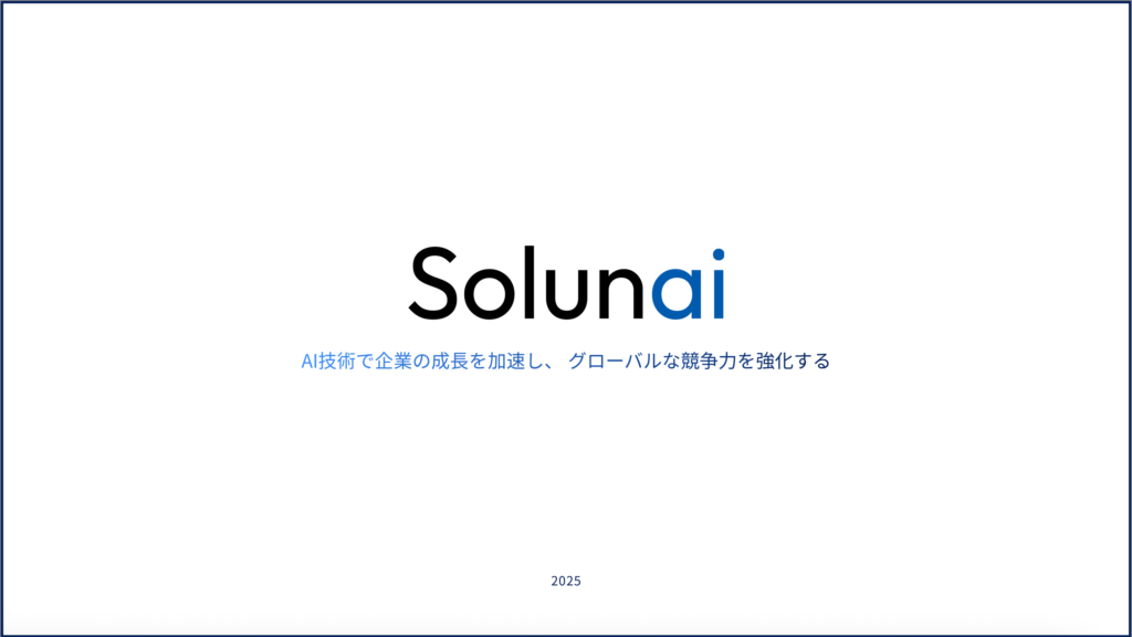 ソルナイはAI×グローバル展開を起点に事業を行っています。本資料…